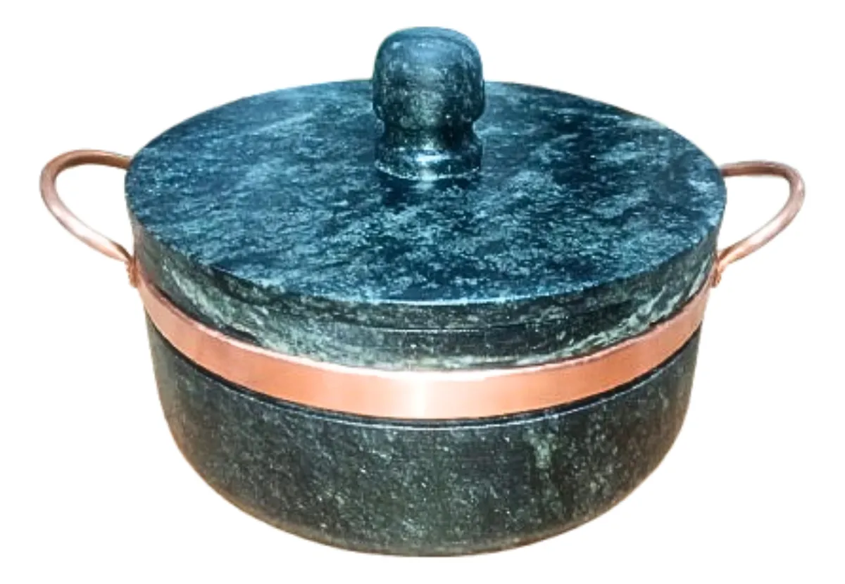 Panela de Pedra Sabão 800ml Artesanal — Curada e Pronta para Uso | Saudável e Antiaderente Descubra o Segredo da Culinária Saudável, Saborosa e Natural com sua Nova Panela de Pedra Sabão da CriArte. Transforme suas refeições e redescubra o prazer de cozinhar com uma Panela de Pedra Sabão Artesanal, enviada já curada e pronta para uso — capacidade de 800ml, ideal para 1 a 2 pessoas. Mais do que um utensílio, é uma experiência gastronômica que une saúde, tradição e sabor autêntico. Atenção à cor da panela: A panela é enviada já curada, com o tom cinza escuro característico da pedra sabão tratada. Essa tonalidade é resultado do processo de cura realizado antes do envio, garantindo que o produto chegue pronto para o uso imediato. Por que escolher a Panela de Pedra Sabão da CriArte? Sabor Inigualável: A pedra sabão realça o gosto natural dos alimentos, proporcionando refeições mais saborosas e nutritivas. Culinária Saudável e Natural: Produzida 100% em pedra sabão pura, material natural que libera minerais benéficos como ferro, cálcio, magnésio e manganês, promovendo uma alimentação mais equilibrada. Retenção de Calor Superior: Mantém o calor por muito mais tempo, cozinhando de forma econômica e mantendo os alimentos quentes mesmo com o fogo desligado. Antiaderência Natural: Por ser enviada já curada, a panela oferece antiaderência natural, facilitando tanto o preparo dos alimentos quanto a limpeza. Versatilidade Sem Limites: Compatível com fogão a gás, fogão a lenha, churrasqueira, forno e fogueira. (Atenção: não compatível com fogão de indução.) Peça Artesanal e Exclusiva: Cada panela é esculpida manualmente, com acabamento polido e alças em cobre, unindo beleza, durabilidade e tradição mineira. Acompanha: 1 Panela de Pedra Sabão 800ml (Dimensões aproximadas: 16 cm de diâmetro x 10 cm de altura) 1 Manual de Cura e Manutenção (para conservar o brilho e a durabilidade da sua panela)